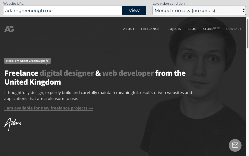 This handy accessibility testing tool lets you visualise your website with simulated low vision and colour blindness of various types.